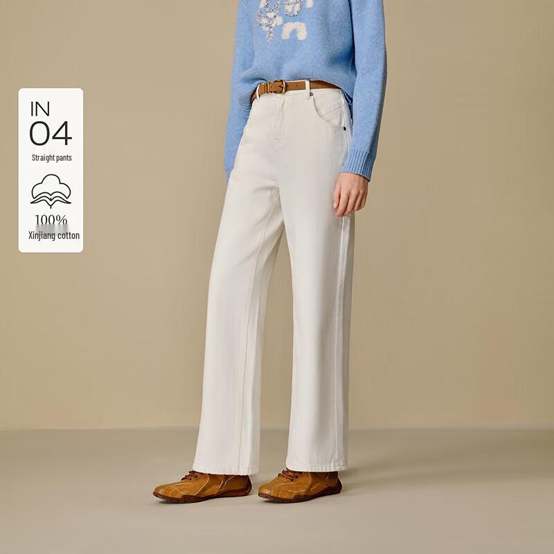 INMAN Women's High-Waist Fleece-Lined Straight-Leg Jeans