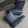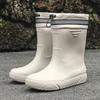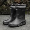 Winddichte Regenstiefel Herren Leder Mid-Calf Regenstiefel Mode Schwarze Gummiband Regenschuhe Herren Wasserdichte Arbeitsstiefel
