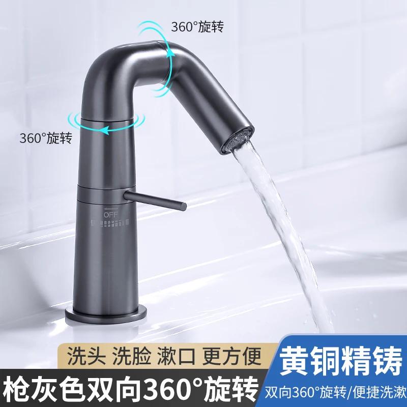 Gold & Black Tall Bathroom Faucet - Rotating Brass Basin Mixer, Hot/Cold Water Tap