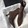 Vintage Spitzschuh Hoher Absatz Damen Socken Stiefeletten Elegant Party Kleiderschuhe Stretch Slim Kurz Botas De Mujer