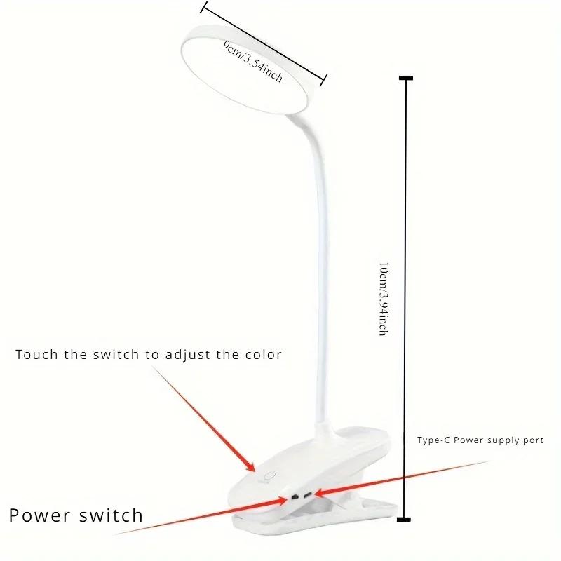 Clip LED Desk Lamp 3 Colors Dimming Eye Protection Night Light Desktop USB Rechargeable Study Bedroom Bedside Table Lamps