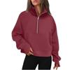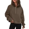 Damen Stehkragen Plus Fleece Einfarbig Langarm Tasche Locker Halb-Zip Pullover Top