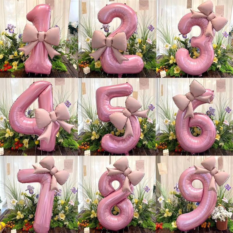 40 Zoll Zahlenballon mit Schleife , Für Geburtstagsfeiern, Jubiläen, Banketthintergrundwanddekoration Dekoration