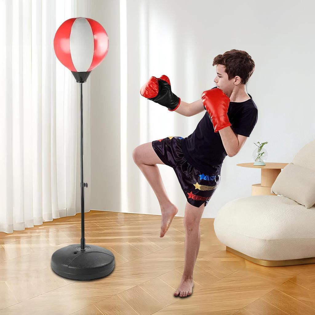 Freistehender Boxsack Boxball Training MMA Sport mit Handschuhen und Matte Verstellbare Höhe 125-145cm für Über 13 Jahre