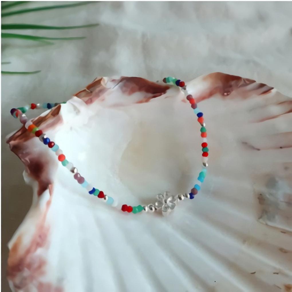 Einfache Kette Täglich 925 Silber Armband Fußkettchen Regenbogen Blume
