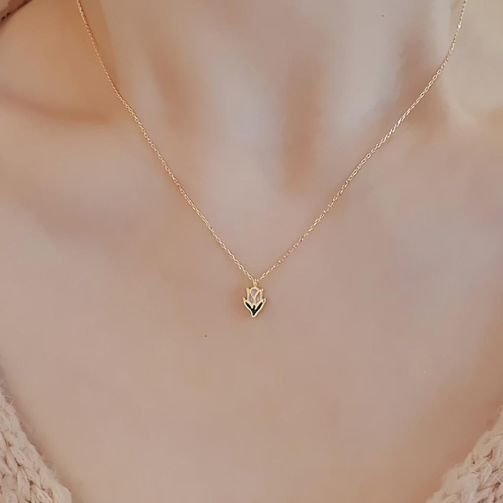 Damen 925 Silber 18K Vergoldet Eine Blume Tulpe Halskette