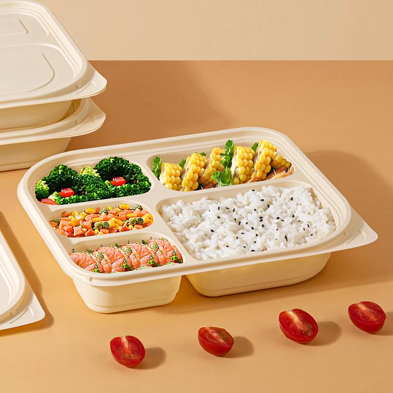 Sai Zhuo 5-Compartment 1250ML Biodegradable Corn Starch Lunch Boxes (200 Count)