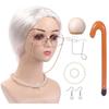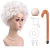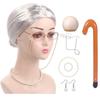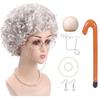 Altes Damen Kostüm für Mädchen Perücke Oma Brille Halskette 100 Tage Schule Kostüm Halloween Oma Kostüm Set