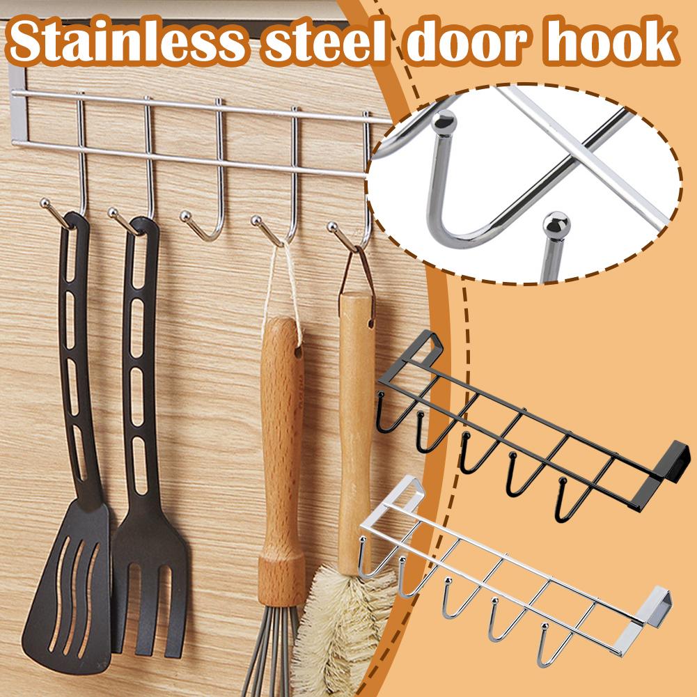 Platzsparender Über-Tür-Hakenhänger mit 5 Haken - Edelstahl Duschtürhaken Organizer für Küche, Zuhause, Büro, Besteck