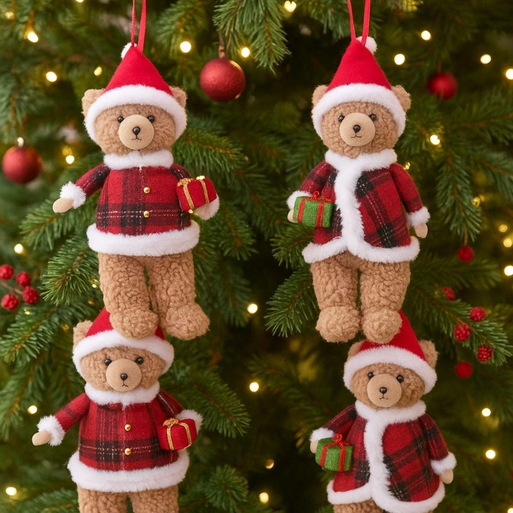 Christmas Atmosphere Cartoon Christmas Bear Pendant Cute Handmade Animals with Hat Xma Tree Decor Family Room Decoration