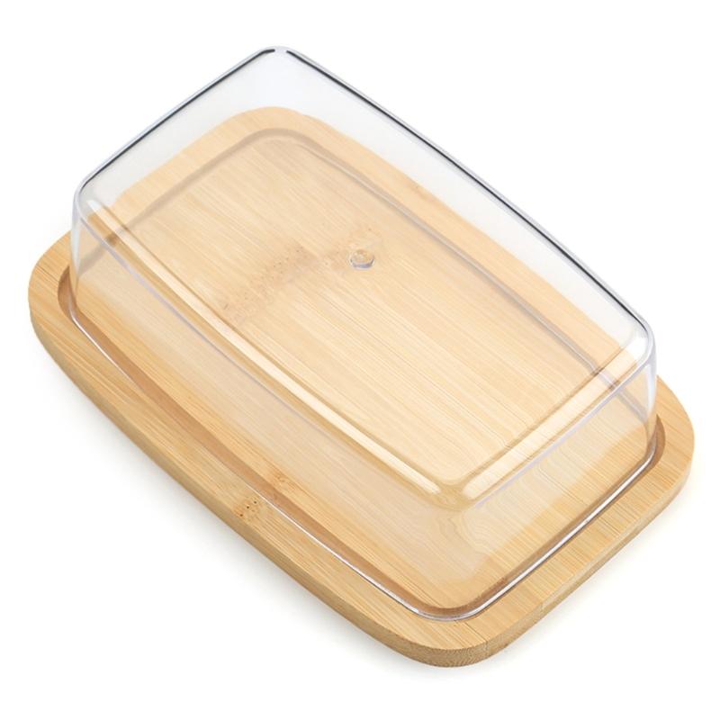 Luftdichte Butterdose mit Kunststoffdeckel Rechteckiger Butterbehälter für Arbeitsplatte und Kühlschrank Bambus Butteraufbewahrungsschale