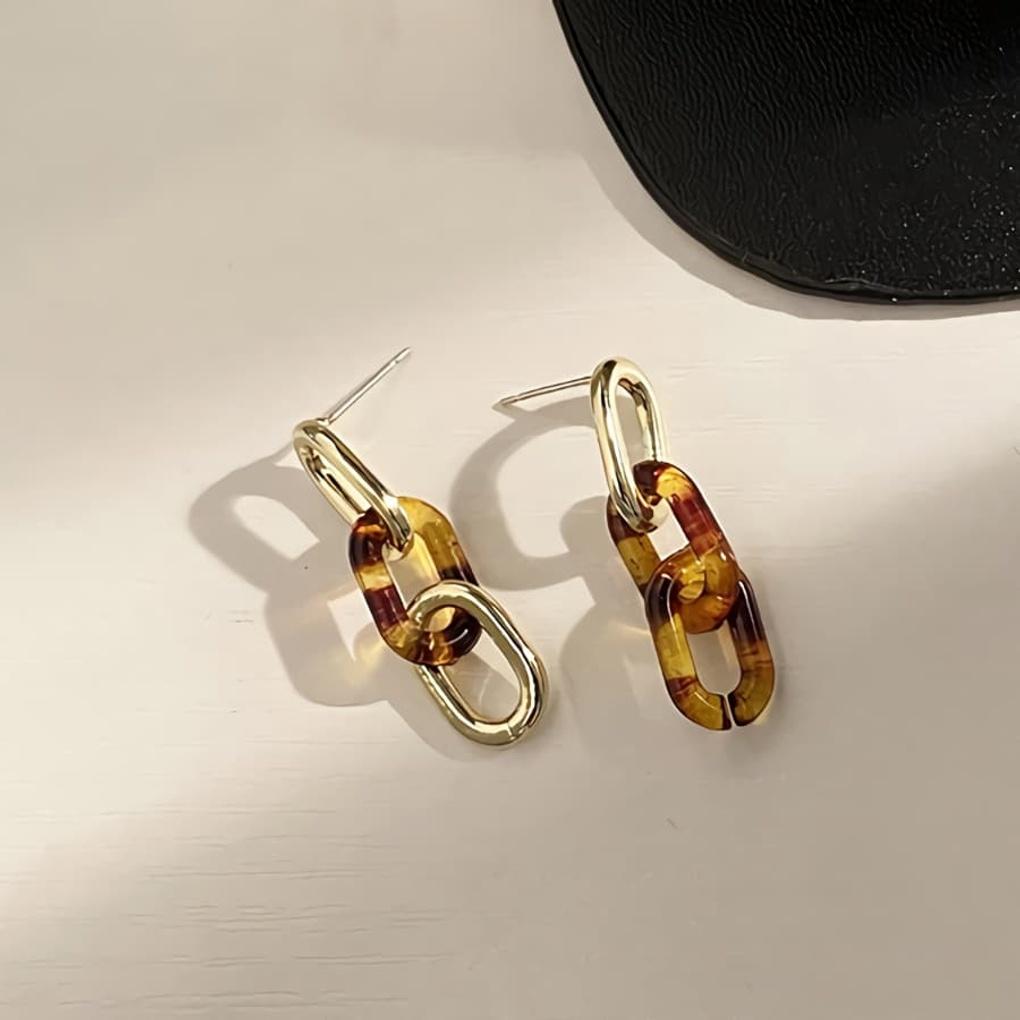 Damen Bernstein Stich Ungleiche Silbernadel Ohrringe