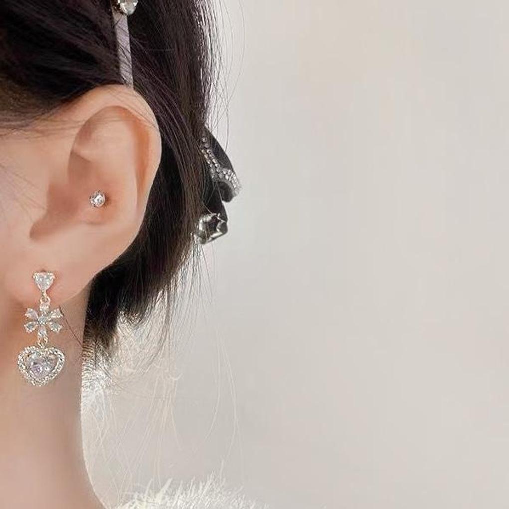 Damen Tägliche Punkt Herz Fokus Lange Ohrringe