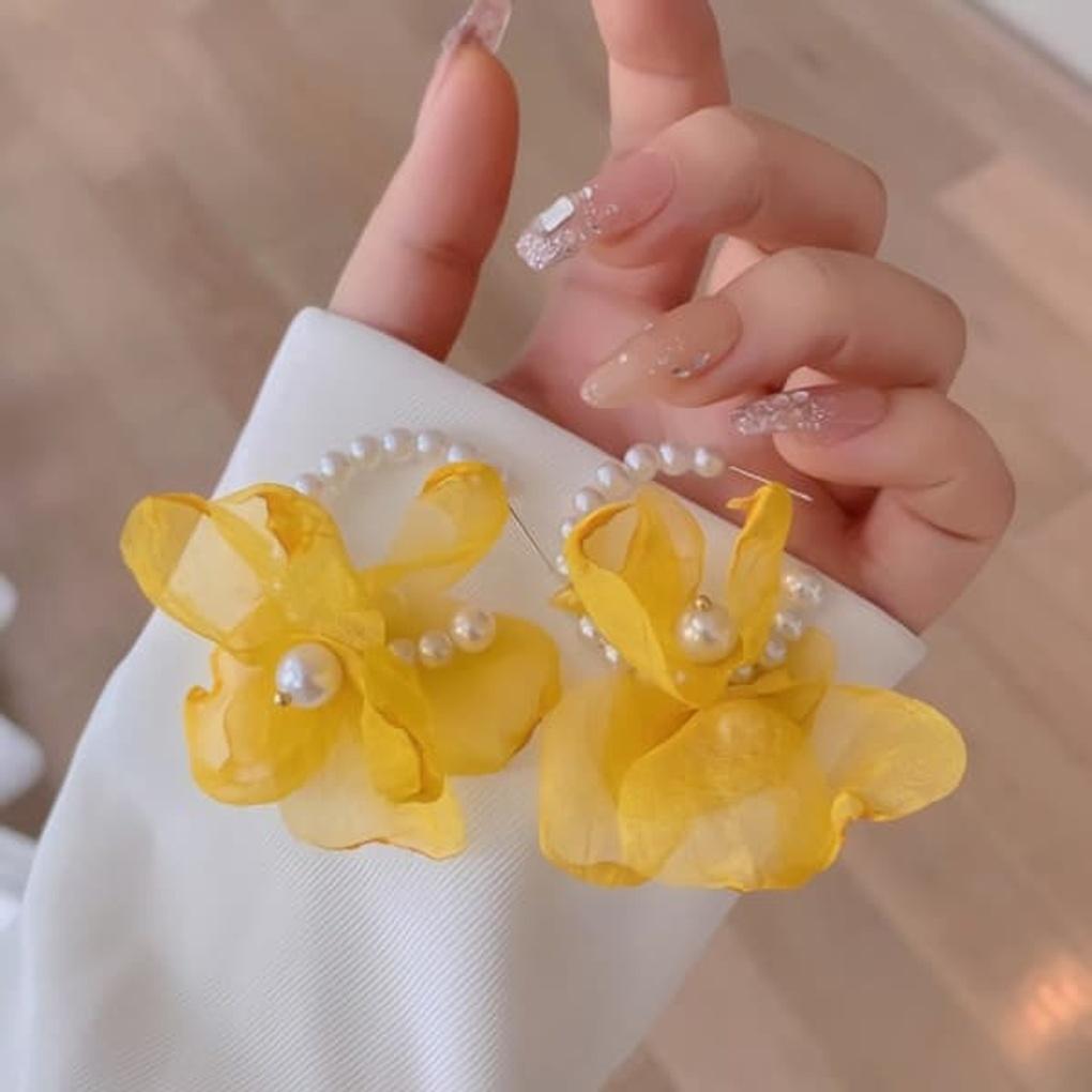 Damen tägliche durchsichtige gelbe Blume Silbernadel Ohrringe