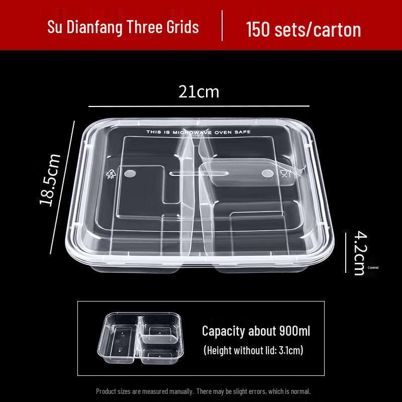 HANDUNYOU Einweg-Mahlzeitenbox rechteckig mit 3 Fächern