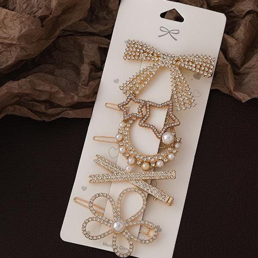 Damen Luxus Zirkonia Haarspangen Set 5 Stück