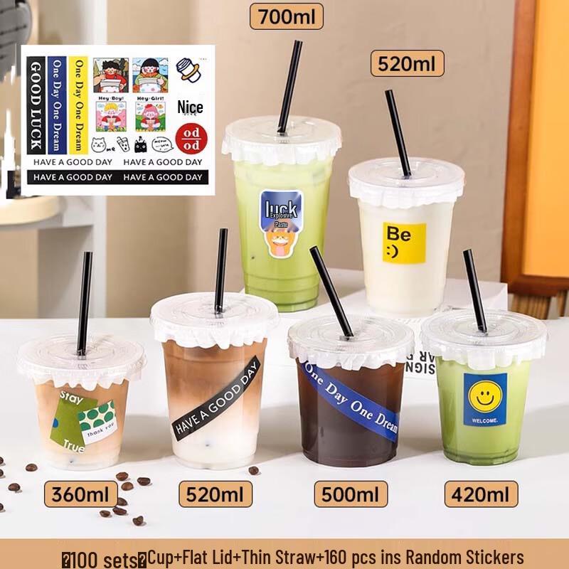 Disposable Plastic Milk Tea Cup Set with INS Stickers