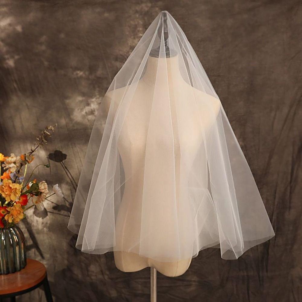 New Single Layer Bridal Veil White Long Women's Tulle Simple Elegant Wedding Veil