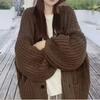 Weich Grün Lässiger Wind Strickjacke Jacke Pullover Damen Herbst und Winter Locker Langärmlig Gestrickte Oberbekleidung Tops Bequem Vielseitig und Modisch