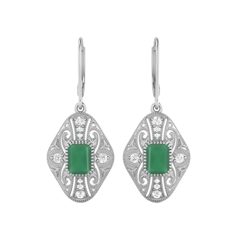 925er Sterling Silber Filigran-Ohrringe mit 4,28 Karat achteckig geschliffenem grünen Onyx. Vintage-inspiriertes Design mit Milgrain-Details, perfekt für elegante Geschenke.