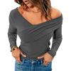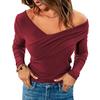 Herbst Winter Neu Einfarbig V-Ausschnitt Offene Schulter Langarm Wickelbody Oberteil Damenbekleidung