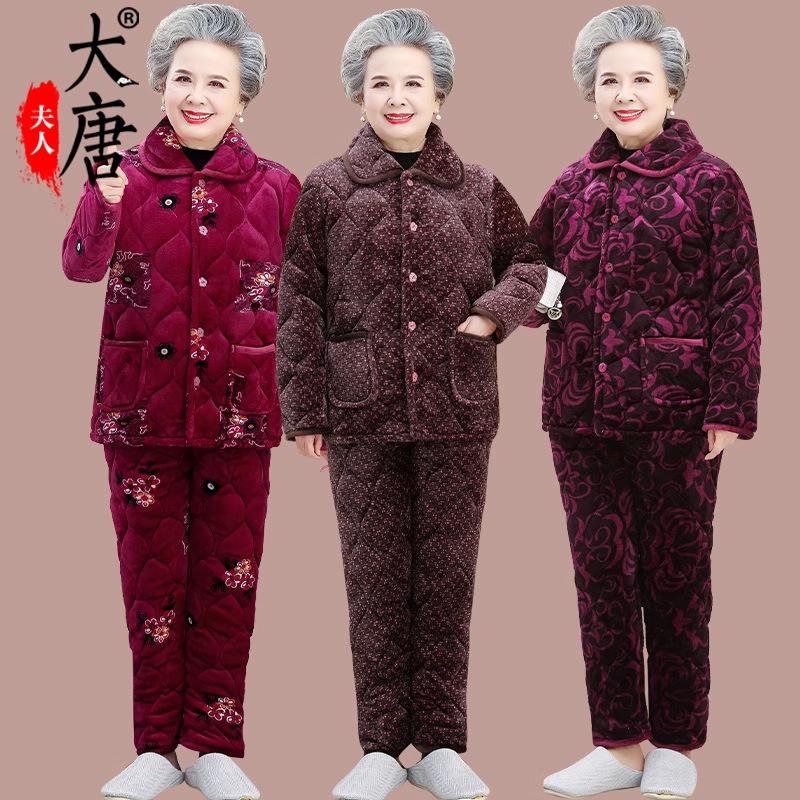 The elderly padded pajamas women's winter loungewear piled thickened padded jacket coral fleece warm suit