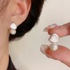 Ohrstecker im koreanischen Stil mit Imitationsperlen und Zirkonia, rund, klassisch, für den täglichen Gebrauch, Damen, Kupfer, Zirkonia-Anhänger, Modeschmuck, Hochzeitsgeschenke