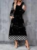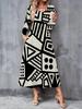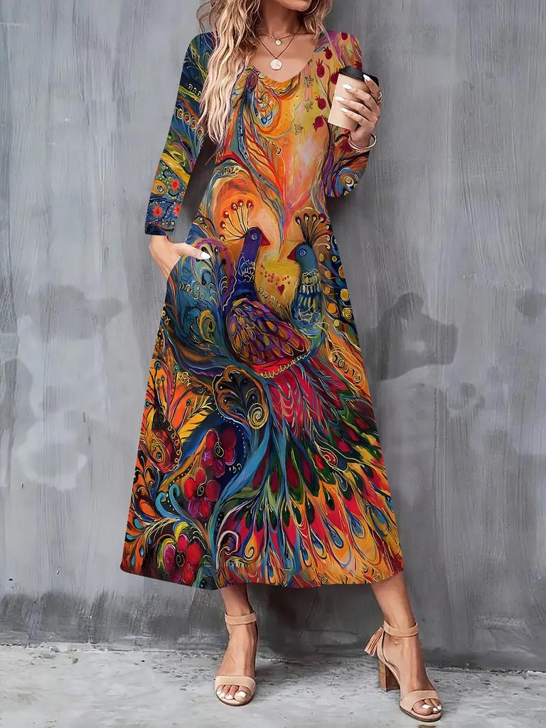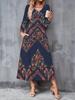 2025 Herbst und Winter Neues Damen Casual Modekleid 3D Retro Musterdruck Langarm V-Ausschnitt A-Linien-Kleider