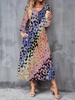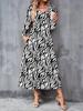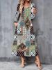 2025 Herbst und Winter Neues Damen Casual Modekleid 3D Retro Musterdruck Langarm V-Ausschnitt A-Linien-Kleider