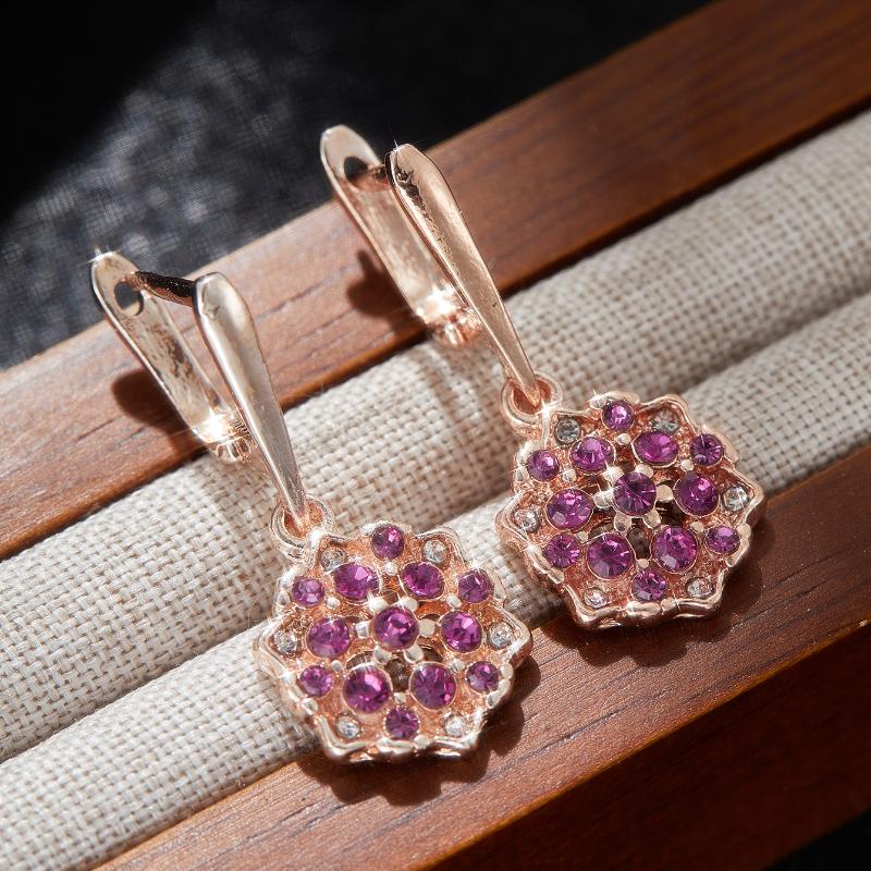 Rosenrote Kristall Runde Zirkon Sonnenblumen Creolen Für Frauen Roségoldene Farbe Hochzeit Blume Schmuck Verlobungsgeschenk