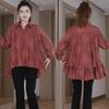 Langärmeliges geprägtes Freizeithemd Figurformend Fleischbedeckend Frühherbst-Stil Polokragen Drei-Knopf-Verschluss Damenoberteil