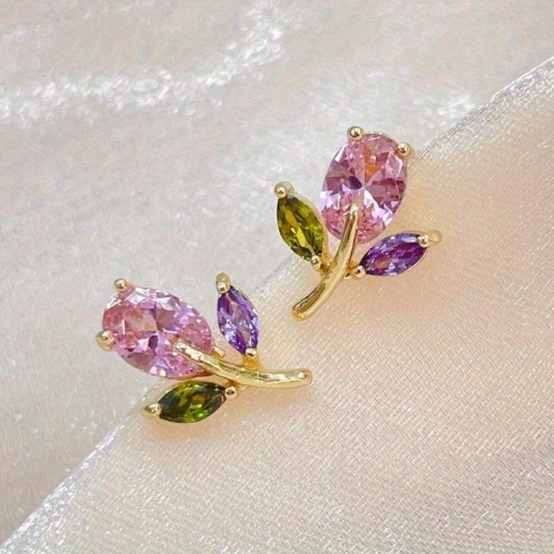 Süße Vielseitige Tulpenform Bunte Zirkon Ohrstecker Für Frauen Schlicht Personalisierter Partyschmuck Alltagskleidung Nischengeschenke