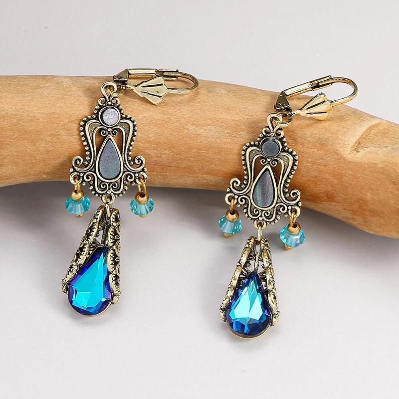 Vintage Luxury Wedding Earrings Blue Water Drop Crystal Tassel Earrings For Women Elegant Bride Engagement Jewelry Gifts