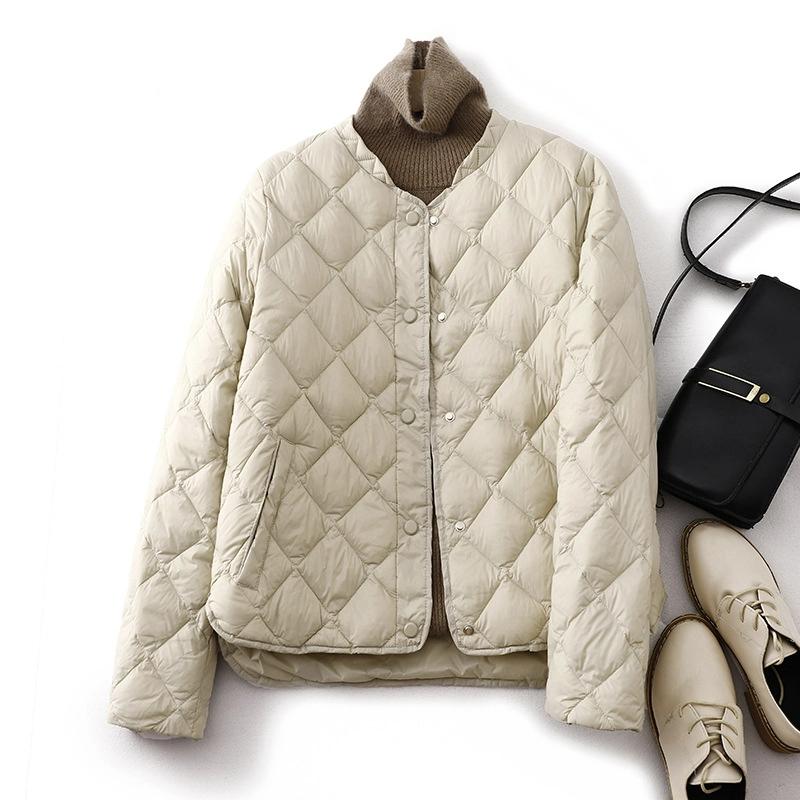 Neue All Match Lockere und Modische Baumwolljacke mit Rautenmuster für Herbst und Winter Stehkragen Warm für Damen