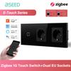 BSEED 1/2/3/4-fach Zigbee Touch-Schalter Glas mit EU-Steckdosen Intelligenter Wandlichtschalter Touchscreen Hintergrundbeleuchtung E-Serie