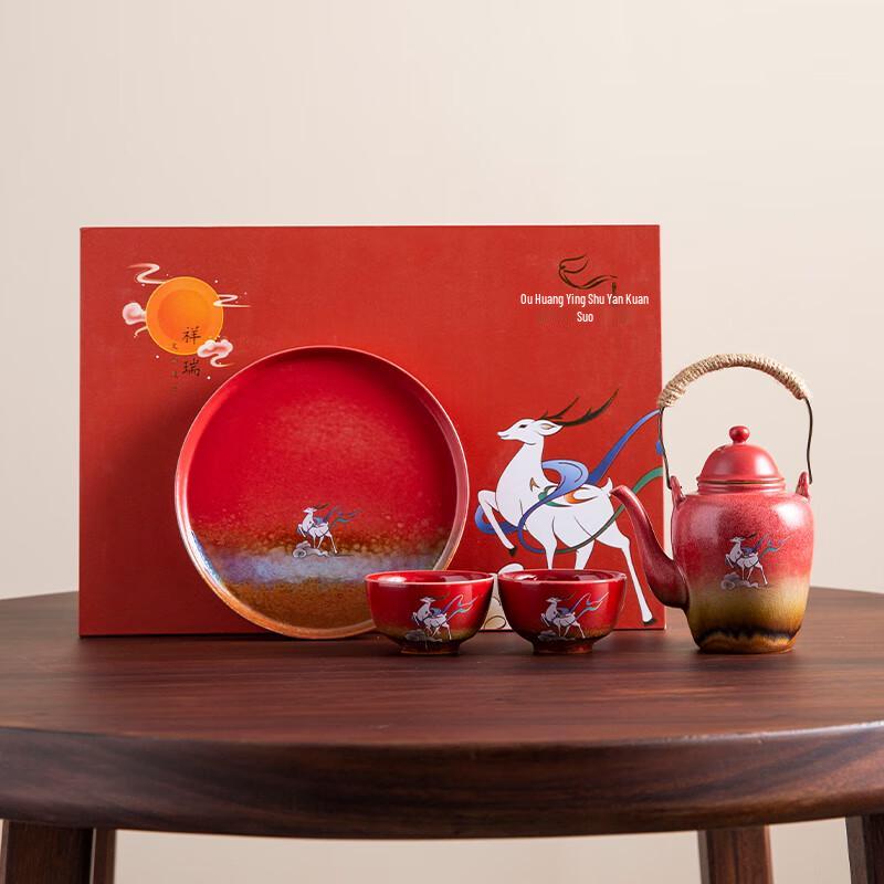 Dunhuang Auspicious Nine-Color Deer Ceramic Tea Set