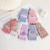 Gloves female winter student flip half finger cute Korean version cartoon warm optional color velvet gloves manufacturer RY