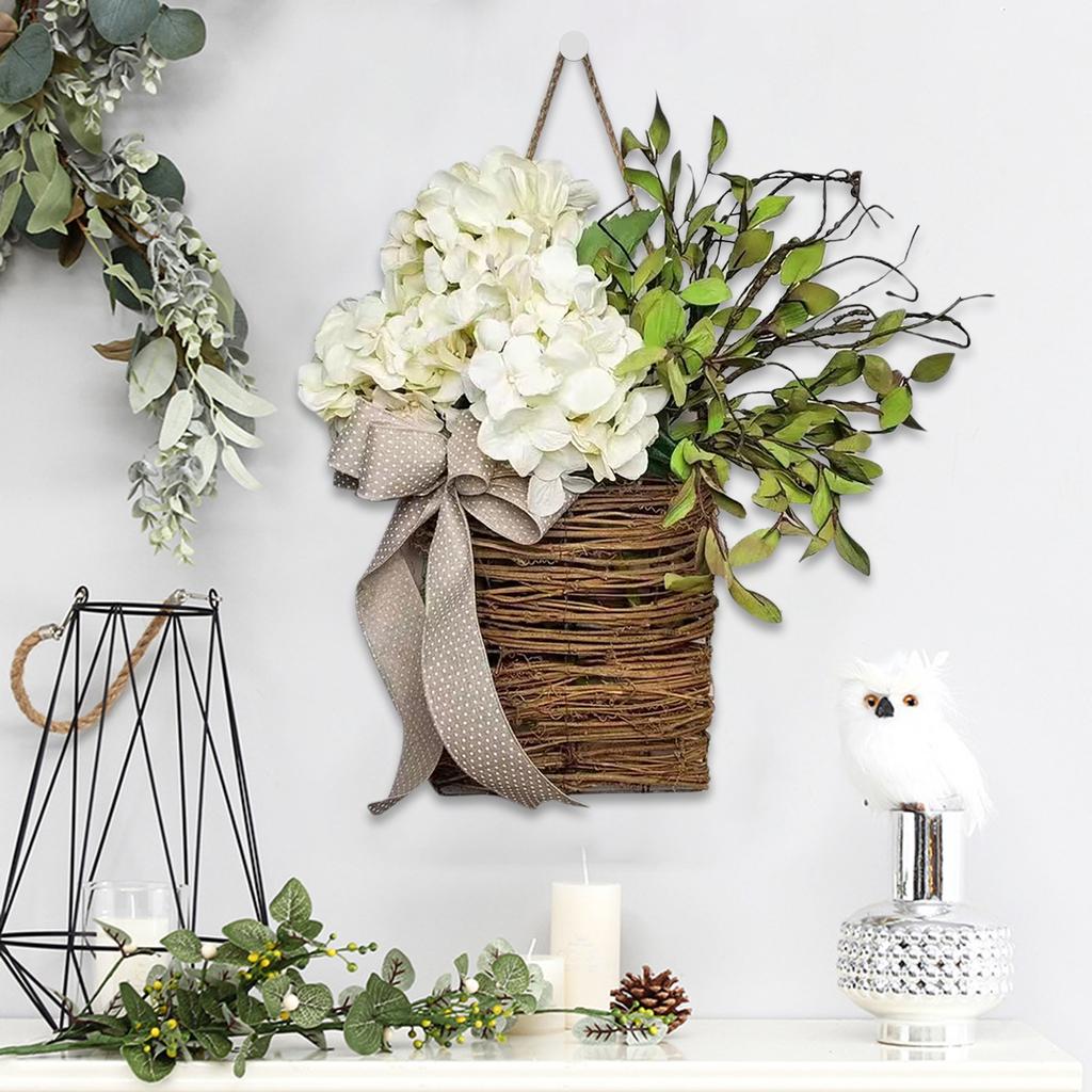 Künstlicher lila Lavendelkranz-Anhänger, weiße Wildblumen, Tür-Hängekorb, Ornamente, Geschenke, Heimdekoration für Veranda, Bauernhaus