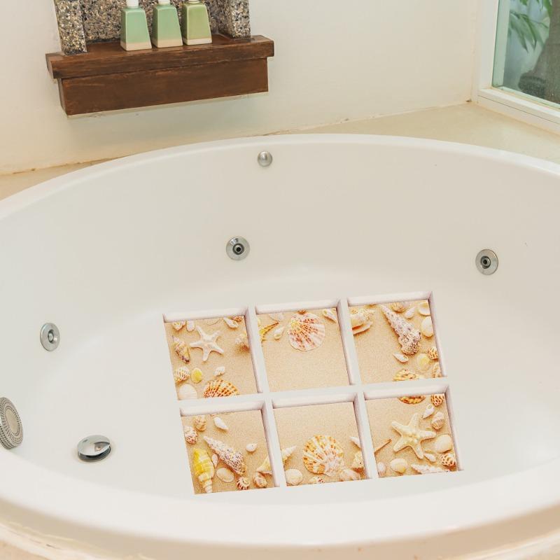 Bath Treads Stickers Beach Pattern Square 3D Adhesive Anti Slip Tub Safety Decals Mat Waterproof Shower Tub Sticker