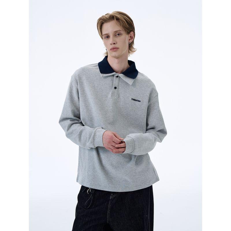 Kisko American Retro Embroidered Fake Two-Piece Preppy Style Polo Shirt for Men and Women, High-End Loose Casual Long-Sleeved T-Shirt