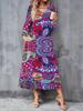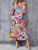 2025 Herbst und Winter Neues Damen Casual Modekleid 3D Retro Musterdruck Langarm V-Ausschnitt A-Linien-Kleider