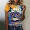 Niedliches kleines Tier bedrucktes Rundhals Kurzarm T-Shirt Weich Bequem Kreativ Lustig Damen Freizeit T-Shirt