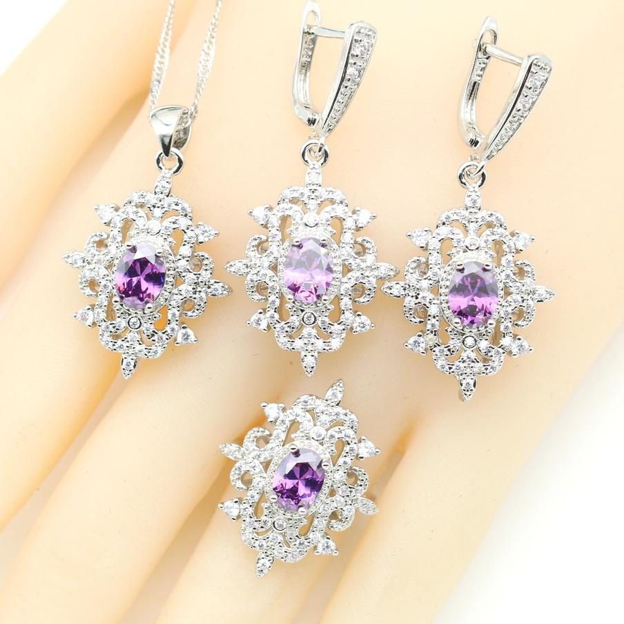 Neue Lila Kristall Schmucksets für Frauen Hochzeit Zirkonia Halskette Anhänger Ohrringe Ring Party Geschenk