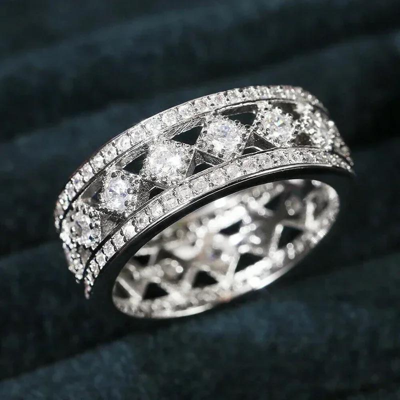 Neue Mode Schlichte Damen Eheringe Ringe Ausgehöhltes Design Vollständig mit Zirkonia ausgefasst Versprechen Party Statement Schmuck