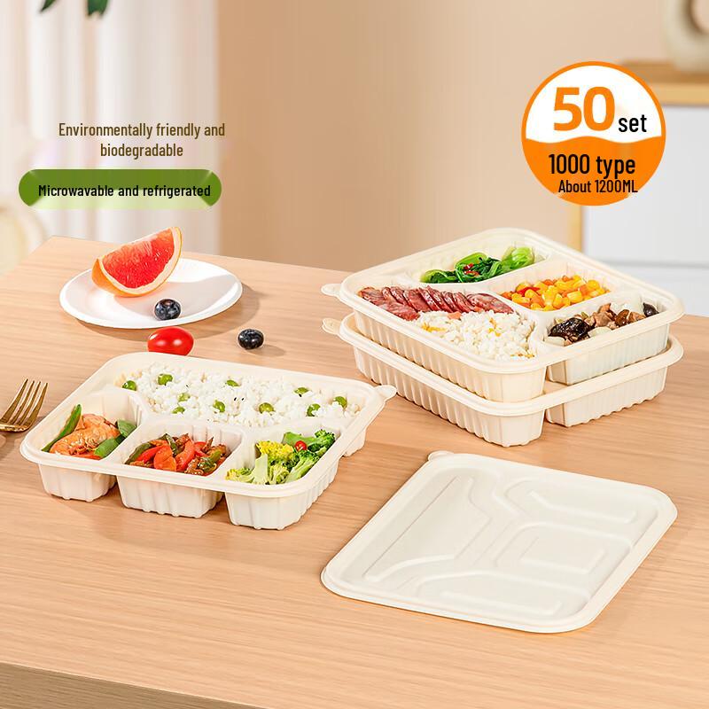 Temeiju Eco-Friendly 4-Compartment Corn Starch Meal Prep Containers with Lids (50 Sets)