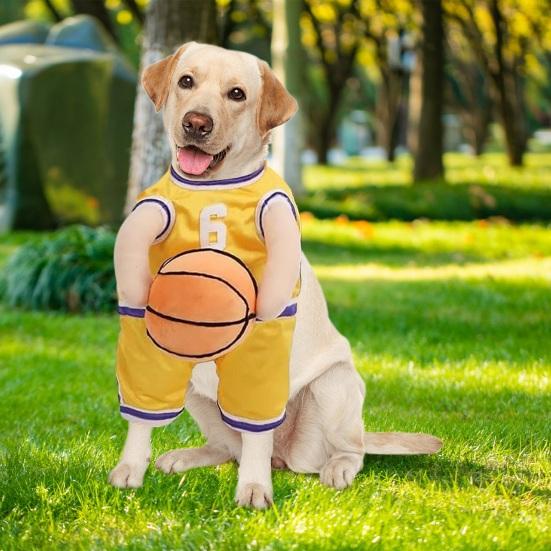 Design: Let your pet stand out with this specially designed dog basketball jersey. Complete with a realistic basketball jersey and ball, this eye-catching costume is perfect for Halloween or any sporty event, ensuring your furry friend steals the spotlight wherever they go.