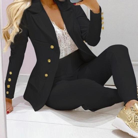 Elegantes Damen-Anzug-Set: Werten Sie Ihre Garderobe mit diesem klassischen Damenanzug-Set aus hochwertigem Polyestermaterial auf. Das Set umfasst ein einreihiges Langarmoberteil mit Revers und eine Anzughose, perfekt für einen lässigen und doch eleganten Stil für den täglichen Arbeitsweg.