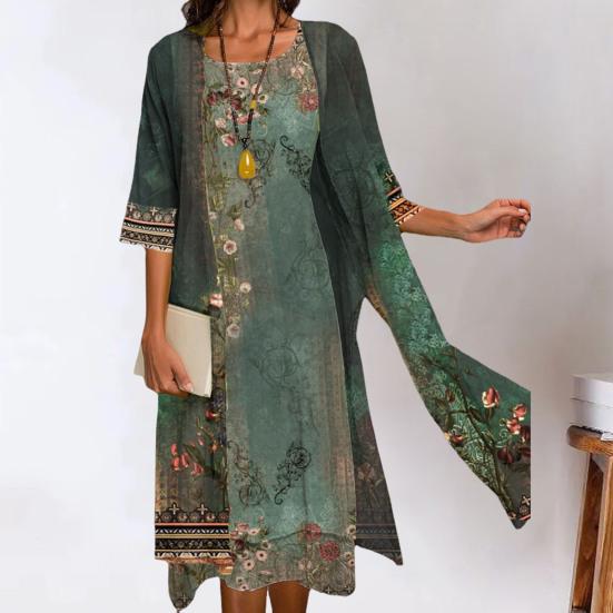 Sie können vor Sonnenlicht geschützt werden, wenn Sie diese Strickjacke tragen, und sie kann Sonnenbrand verhindern. Das schöne Blumenmuster Kleid Schal Mantel Zweiteiler ist charmant an heißen Tagen.