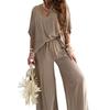 2Pcs/Set Women Summer V-neck Batwing Half Sleeve Tops High Waist Elastic Waistband Wide