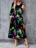 2025 Herbst und Winter Neues Damen Casual Modekleid 3D Batik-Print Langarm V-Ausschnitt A-Linie Kleider